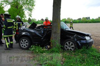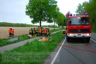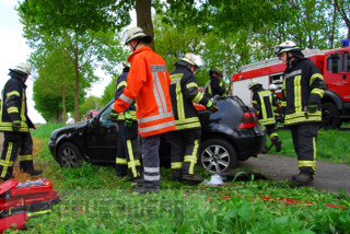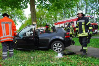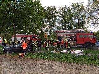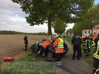 Seedorf(tw)Einsatz für die Ortsfeuerwehr Zeven am 13.05.15 um 19:08 Uhr zu einem schweren Verkehrsunfall mit einer eingeklemmten Person auf der B 71, laut ersten Meldungen sollte sich der VU zwischen Brauel und Seedorf befinden. Der Einsatzort lag letztentlich am Ortsausgang von Seedorf in Fahrtrichtung Kaserne Seedorf. Der Fahrer eines VW Golf ist auch noch bisher ungeklärter Ursache ca. 200 Meter hinter dem Ortsausgang Seedorf links von der Fahrbahn abgekommen und gegen einen Baum geprallt. Der Fahrer wurde dabei in seinem Fahrzeug eingeklemmt. Mit hydraulischem Rettungsgerät konnte der Fahrer nach kurzer Zeit aus seiner misslichen Lage befreit. Er wurde zur weiteren medizinischen Behandlung in ein Krankenhaus transportiert.