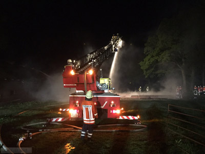 Steddorf(tw) Alarm für die Ortsfeuerwehren aus Steddorf,Zeven,Heeslingen,Boitzen und Wense zu einem Brandeinsatz auf einem landwirtschaftlichen Betrieb in Steddorf am 17.05.15 um 02:52 Uhr.Aus bisher ungeklärter Ursache geriet eine Scheune in Steddorf in Brand. Der ehemalige Pferdestall, der jetzt lediglich zur Lagerung von Stroh genutzt wurde, brannte komplett herunter. Das Feuer drohte ebenfalls auf benachbarte Gebäude überzugreifen, doch die Feuerwehr konnte größere Schäden abwenden. Insgesamt waren ca. 60 Kameraden der Wehren aus Steddorf, Wense, Boitzen, Heeslingen und Zeven an den Löscharbeiten beteiligt. Der Schaden wird auf ca. 40.000 Euro geschätzt.