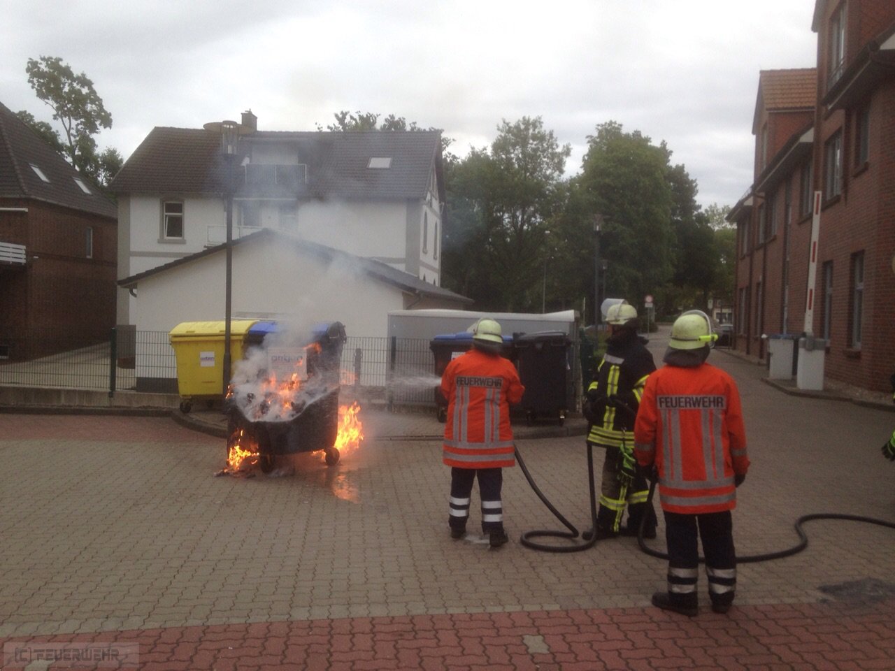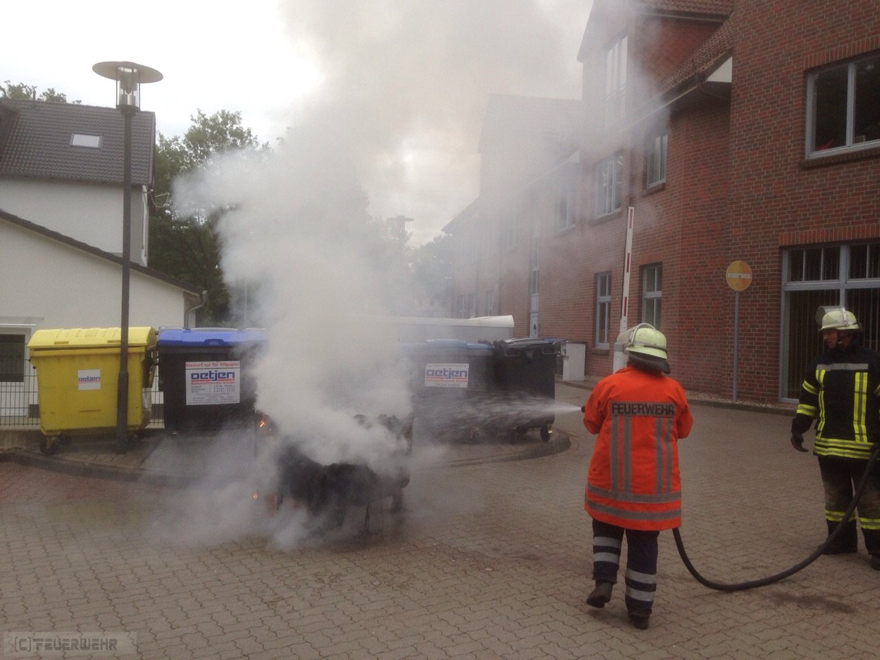Zeven(tw) Abend des 18.06.2015 wurde um 19:20 Uhr der Einsatzleitstelle für Rettungsdienst und Feuerwehr in Zeven eine unklare Rauchentwicklung hinter einem Ladengeschäft gemeldet. Aufgrund dieser Meldung wurde die Ortsfeuerwehr Zeven mit dem Einsatzstichwort F2 alarmiert. Auf Anfahrt zum Gerätehaus wurde den Kameraden/innen eine Infomeldung nach Rückmeldung eines Passanten auf die DME geschickt, das ein Altpapiercontainer brennen würde. Innerhalb einer Woche wurde die Ortsfeuerwehr Zeven zum 3. mal an die selbe Adresse geschickt, jedesmal brannten Altpapiercontainer. Die Polizei Zeven hat die Ermittlungen aufgenommen.