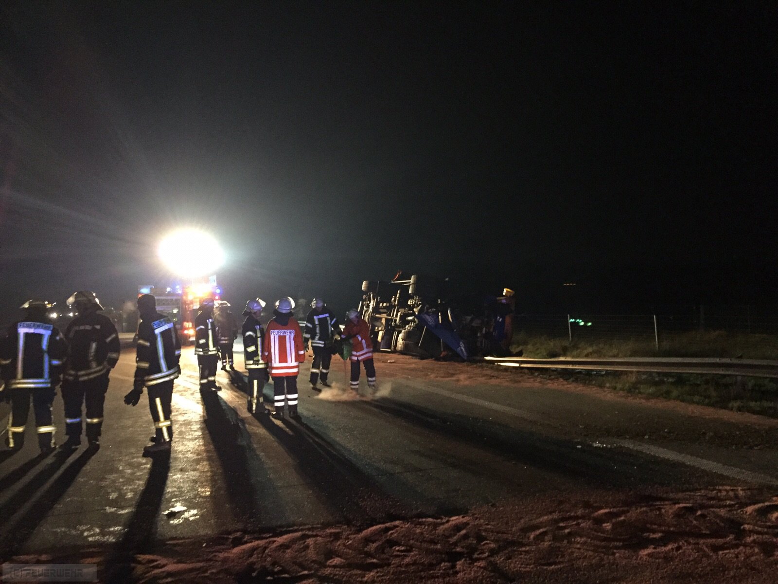 Gyhum/A1. Am frühen Freitagmorgen hat ein außergewöhnlicher Verkehrsunfall auf der A1 in Richtung Bremen bei Gyhum für erhebliche Verkehrsbehinderungen gesorgt. Ein 31-jähriger Kraftfahrer aus dem Wendland hatte gegen 3.20 Uhr die Geschwindigkeit eines vor ihm fahrenden Streufahrzeuges, das bei den winterlichen Verhältnissen für Sicherheit auf der A1 sorgen sollte, unterschätzt. Fast ungebremst fuhr der Sattelzug auf das Fahrzeug des privaten Autobahnkonsortiums A1 mobil auf. Durch die Wucht des Aufpralls schleuderte das Streufahrzeug in den Seitenraum der A1 und kippte dort um. Dabei verlor es seine salzige Ladung. Der Sattelzug blieb schwer beschädigt auf einem Überholfahrstreifen stehen. Glücklicherweise zog sich der Fahrer des Sattelzuges nur leichte Verletzungen zu. Die Autobahn musste zwischen den Anschlussstellen Elsdorf und Bockel für mehrere Stunden voll gesperrt werden.