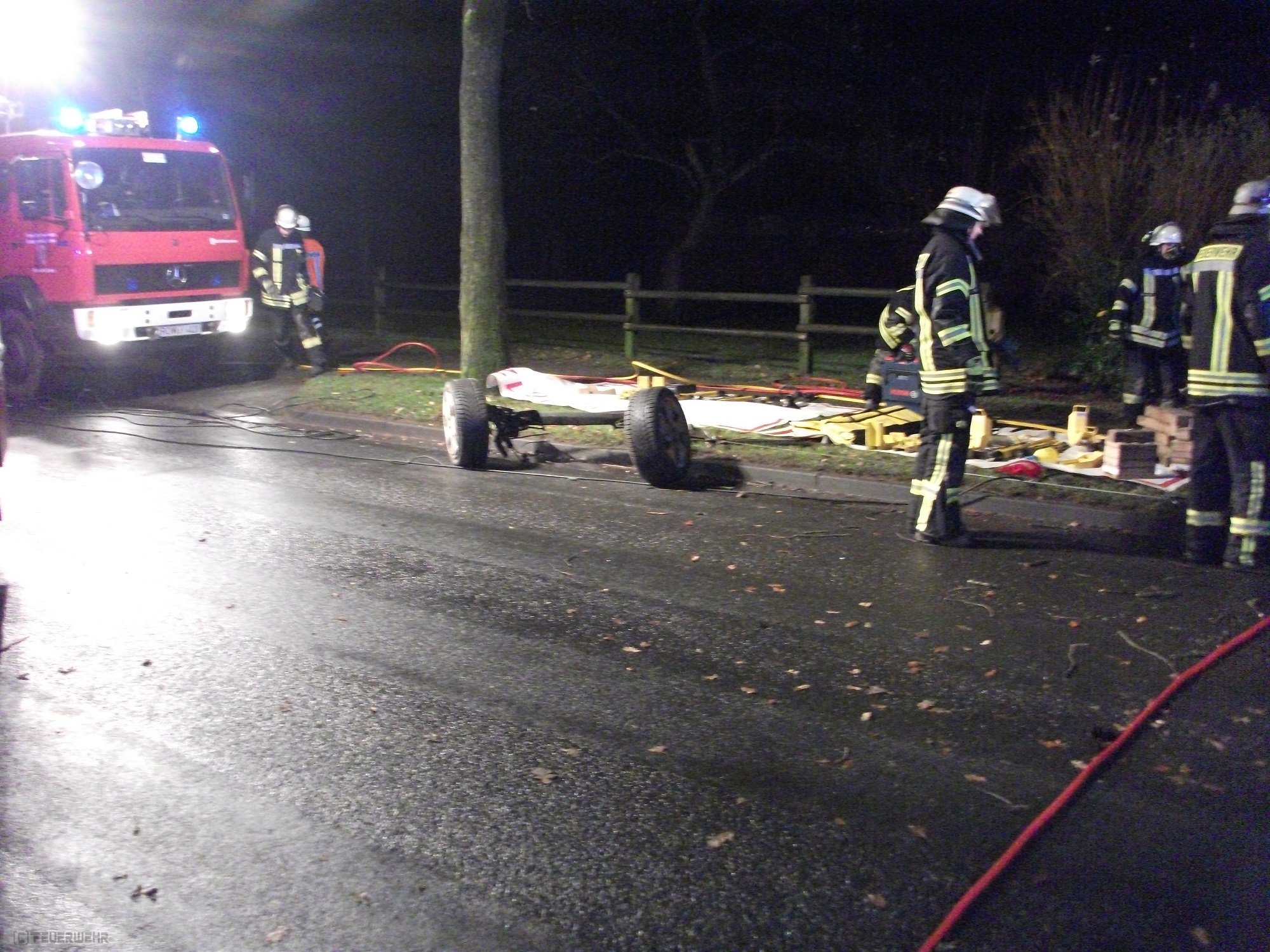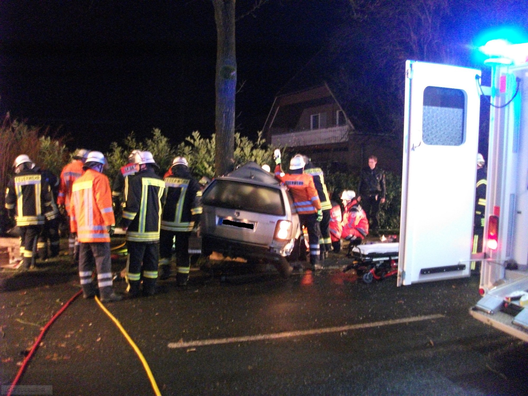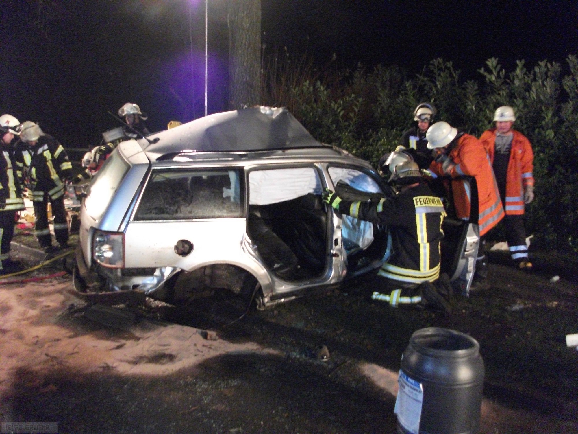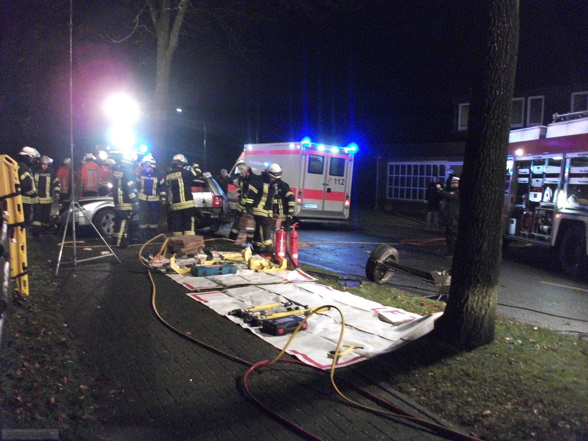 Rockstedt(dm) Am späten Montagabend kurz vor Mitternacht kam es aus ungeklärter Ursache in der Rockstedter Hauptstraße zu einem schweren Verkehrsunfall. Ein junger Autofahrer prallte aus Richtung Rhade kommend mit der Fahrerseite seines VW Passat in Höhe der B-Säule gegen einen Baum der im rechten Seitenstreifen stand. Durch die Wucht des Aufpralls wurde die Hinterachse des Pkws raus gerissen. Da er bei dem Aufprall eingeklemmt wurde alarmierte die Leitstelle neben dem Rettungsdienst und dem Notarzt auch die Feuerwehren aus Rockstedt, Rhade und Zeven. Die Einsatzkräfte befreiten den jungen Mann mit der Rettungsschere und einem Spreizer aus dem Wrack. Trotz der schnellen Befreiung, die nur wenige Minuten dauerte, kam jede Hilfe für die verletzte Person zu spät. Sie verstarb noch an der Unfallstelle. Die Polizei Bremervörde hat die Ermittlungen zur genauen Unfallursache aufgenommen. Desweiteren wurden noch ausgelaufene Betriebsstoffe mit Bindemittel abgestreut.