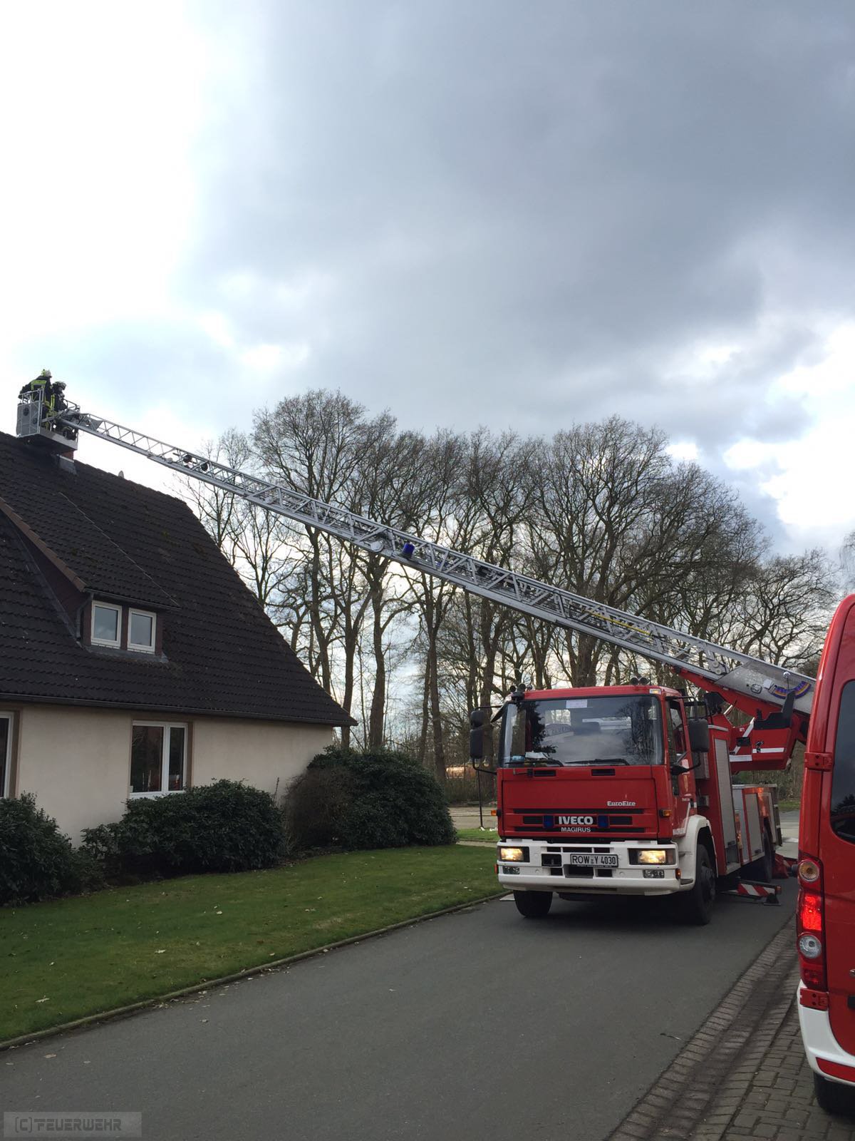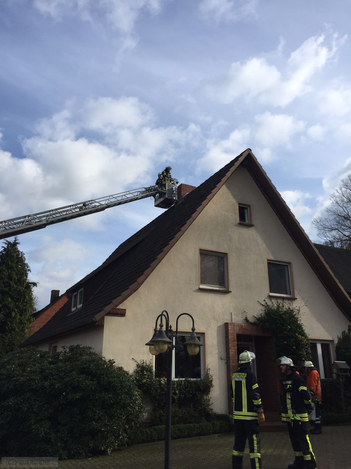 Wiersdorf(tw) Alarm für die Ortsfeuerwehren aus Wiersdorf,Heeslingen und Zeven zu einem Schornsteinbrand in Wiersdorf in der Straße zum Dorn. Die Bewohner des Hauses haben eine Verrauchung in der oberen Etage ihres Wohnhaus festgestellt und den Notruf gewählt. Eine Kameradin der Ortsfeuerwehr Zeven die auch eine Schornsteinfegerin ist, hat mit Unterstützung der Drehleiter den Schornstein frei gefegt. Auf jeder Etage des Wohnhauses haben Feuerwehrkameraden den Schornstein kontrolliert. Das freigefegte Brandgut wurde nach draußen verbracht und der Schornstein mittels Wärmebildkamera und Fernthermometer ausgiebig kontrolliert.