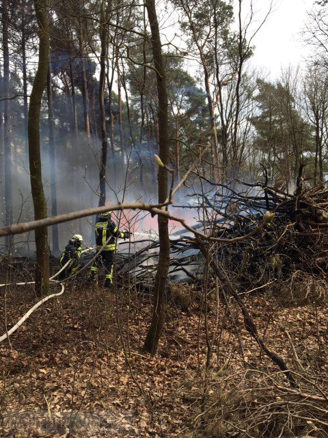 Badenstedt(tw) Die Ortsfeuerwehren aus Zeven,Heeslingen,Badenstedt und Oldendorf wurden heute um 14:57 Uhr mit der Meldung FW2 brennt Wald nach Badenstedt alarmiert. Bei Eintreffen der ersten Kräfte brannte ein Holzhaufen größeren Ausmaßes. Da die nächste Wasserentnahmestelle weit entfernt war wurde mit den wasserführenden Fahrzeugen ein Pendelverkehr eingerichtet, daher wurden noch die Tanklöschfahrzeuge aus Hepstedt und Tarmstedt alarmiert. Das Feuer konnte nach ca. 2 Stunden gelöscht werden. Mit Unterstützung eines Radladers wurde der Holhaufen auseinander gefahren und die letzten Glutnester abgelöscht. Die Polizei Zeven hat die Ermittlungen zur Brandursache aufgenommen.