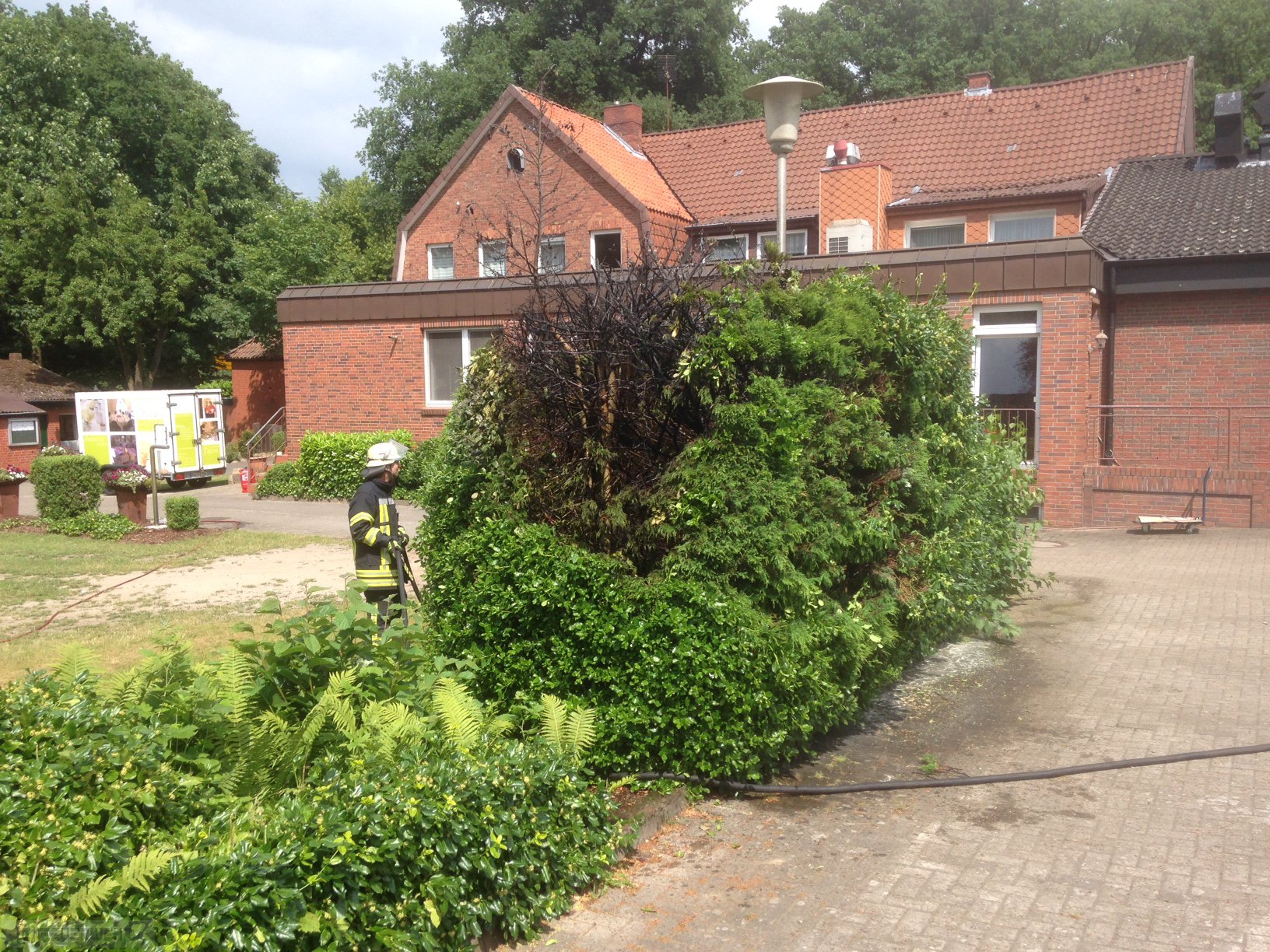 Aus bisher noch ungeklärter Ursache geriet am 15.06 gegen 14:50 Uhr eine Hecke im Braueler Wallweg in brand, bei Eintreffen der ersten Kräfte wurde das Feuer durch den Eigentümer abgelöscht.