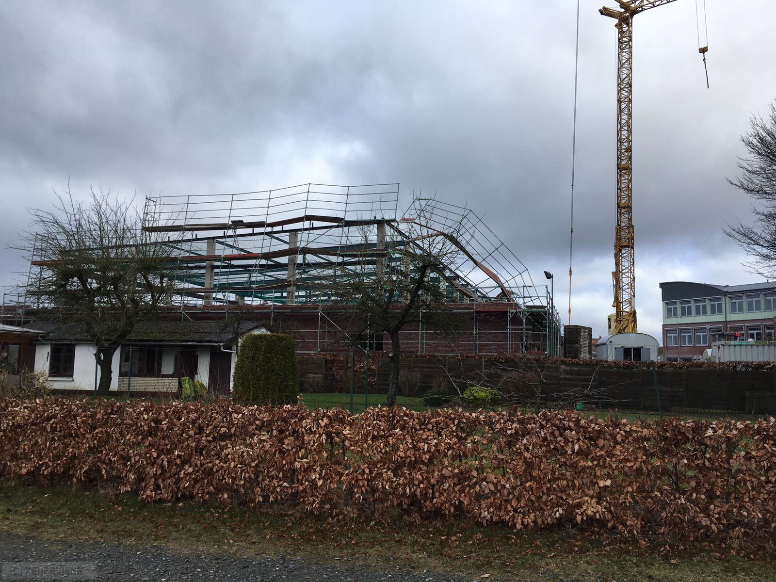 Zeven(tw) Alarm für die Ortsfeuerwehr Zeven am 18.03.17 um 08:32 Uhr zu einer technischen Hilfeleistung im Zevener Lerchenweg. Aufgrund von Sturmtief Eckhard drohte ein Baugerüst auf ein Wohnhaus zu fallen. Gerüstbauer waren gerade dabei, das Baugerüst zu verankern als das Gerüst durch den Sturm umgeweht wurde. Die Gerüstbauerr auf dem Baugerüst konnten sich gerade noch in Sicherheit bringen. Durch die Feuerwehr wurde das Baugerüst gesichert bzw. einige Teile kontrolliert zu Fall gebracht.