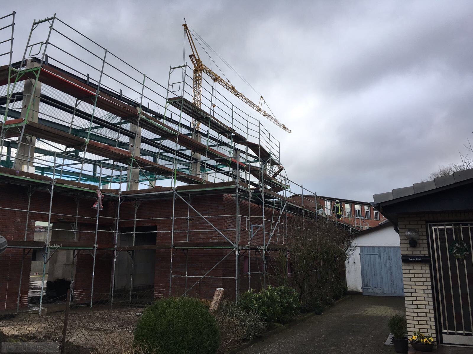 Droht Baugerüst auf Wohnhaus zu fallen