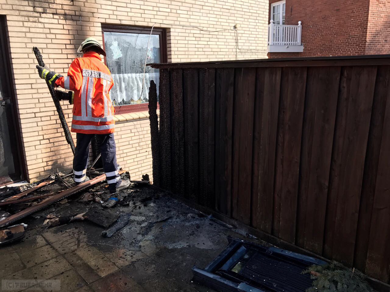 Zeven(tg) Es brannten mehrere Gegenstände und ein Holzzaun auf der Rückseite eines Wohn- und Geschäftshauses. Das Feuer wurde von einem Trupp unter PA mit zur Hilfenahme eines Hohlstrahlrohres gelöscht. Im Anschluss wurde die Einsatzstelle mit der Wärmebildkamera kontrolliert und an die Polizei übergeben.