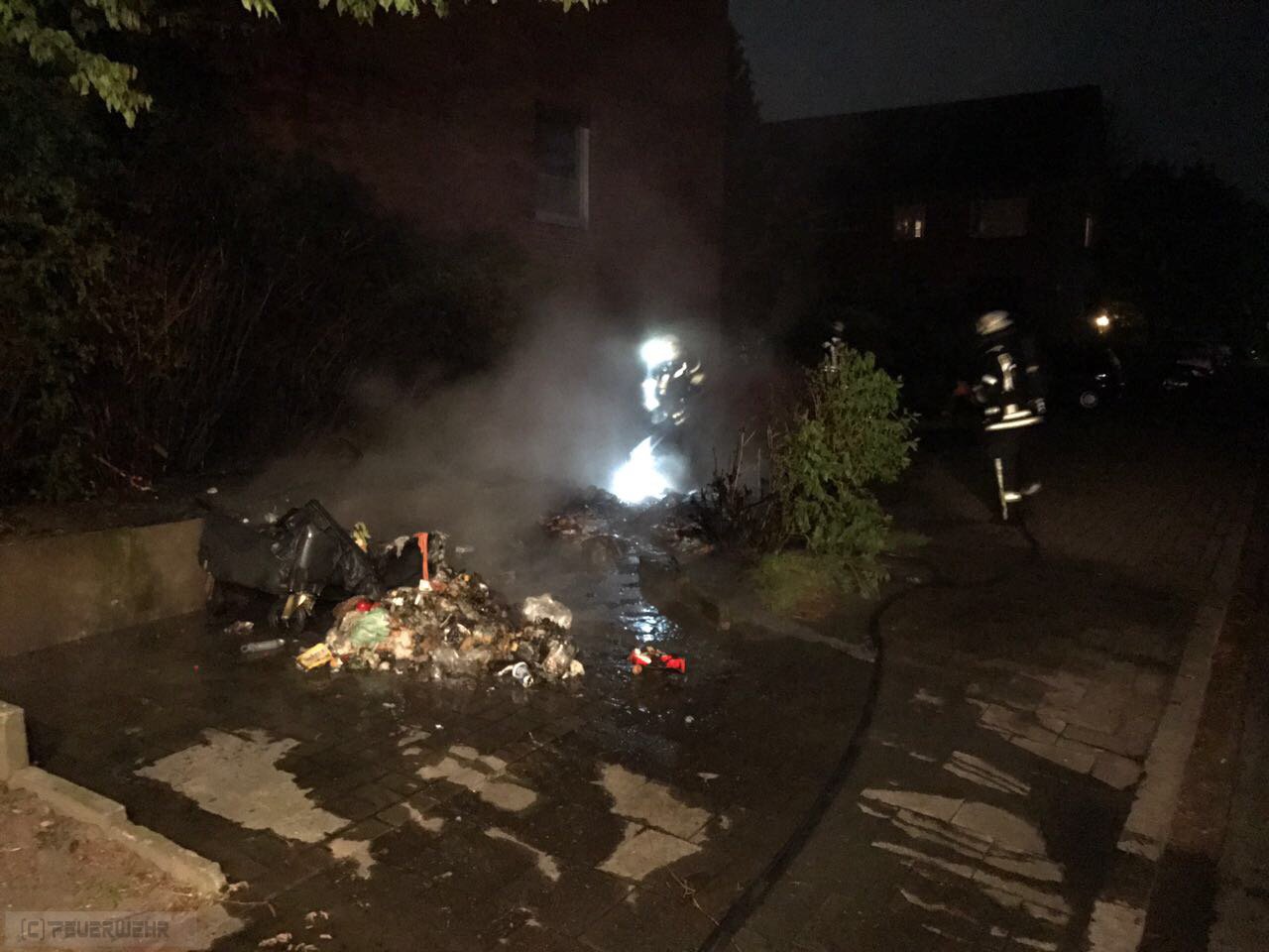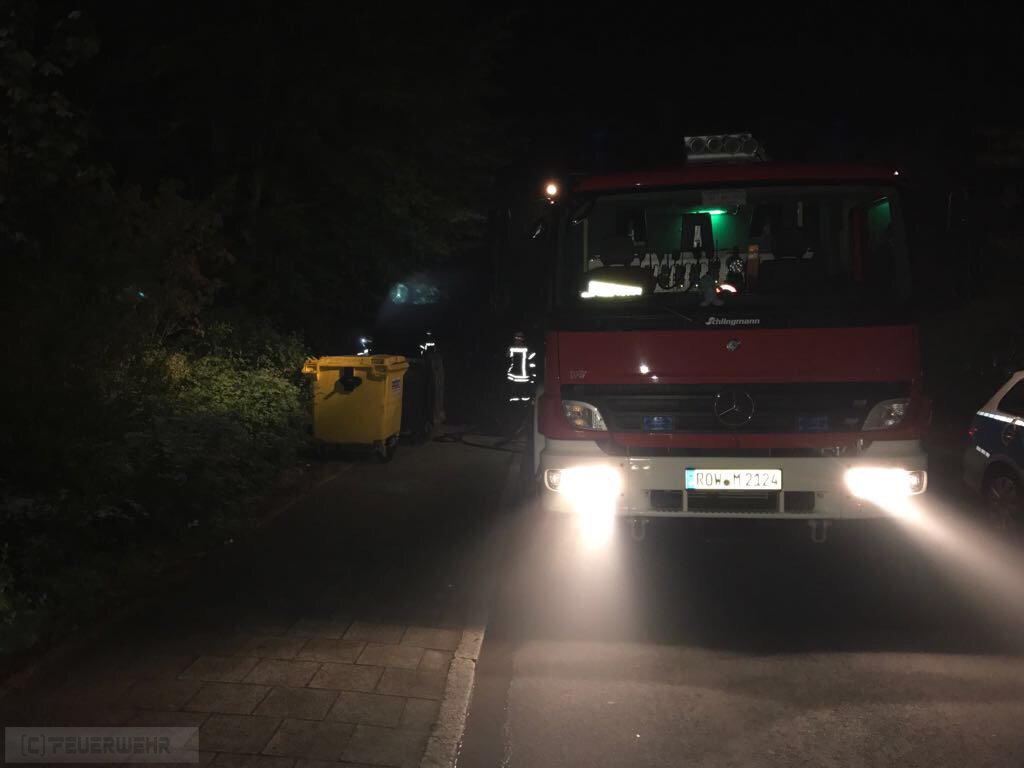 Zeven(tw) Alarm für die Ortsfeuerwehr Zeven am 13.05.17 um 02:46 Uhr zu einem brennenden Müllcontainer. Bei Eintreffen der ersten Kräfte brannten zwei große 1000l Müllcontainer aus Kunststoff an einem Mehrfamilienhaus. Ein Trupp unter Atemschutz konnte das Feuer zügig ablöschen, die Einsatzstelle wurde abschließend mit der Wärmebildkamera kontrolliert. Die Polizei Zeven hat die Ermittlungen zur Brandursache aufgenommen, die war nicht der erste Einsatz an der selben Adresse !!