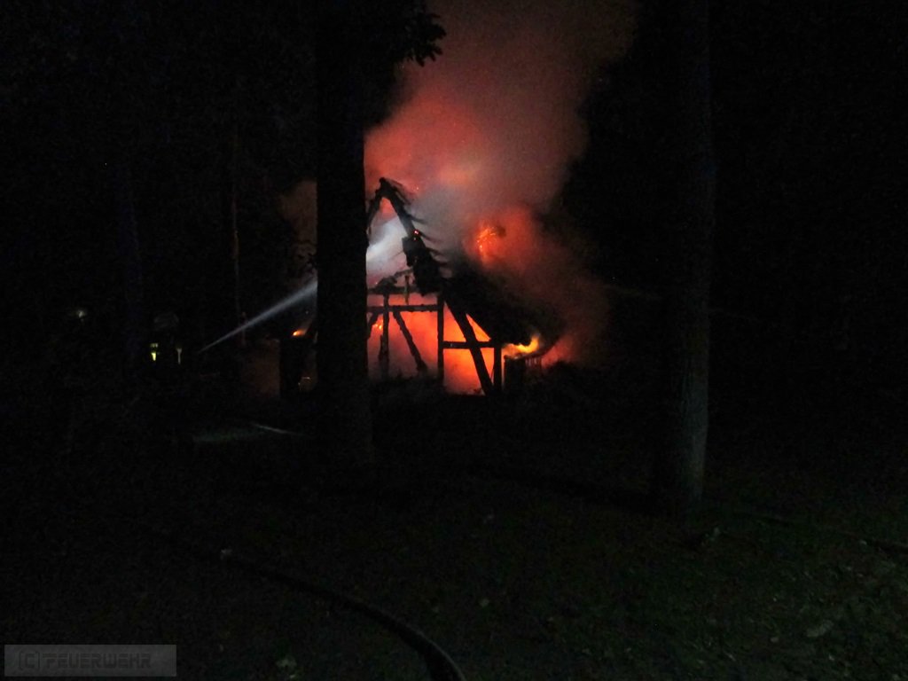 09.07.2017 Heeslingen (as) Unweit des Heeslinger Heimathauses in der Bremer Straße geriet am späten Sonntagabend gegen 23.04 Uhr aus ungeklärter Ursache ein ehemaliger Schafstall in Brand. Bei Eintreffen der ersten Kräfte stand das rund 8 mal 15 Meter große Gebäude in Vollbrand.