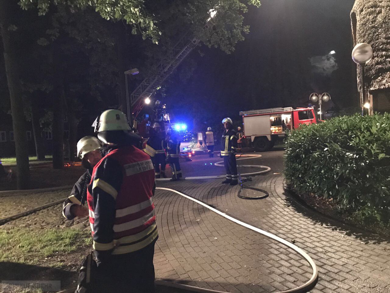 Einsatzleiter Bernd Lemmermann ließ umgehend das Alarmstichwort auf „Feuer groß“ erhöhen. Somit wurde neben den Wehren Heeslingen und Zeven, die schon vor Ort waren, die Feuerwehr Weertzen nachalarmiert. Mit vier C-Rohren und einem B-Rohr gingen die Kräfte gegen den Brand vor. Besonders gefährlich war der Funkenflug. Da in unmittelbarer Nähe das Heimathaus und weitere Reed gedeckte Gebäude standen. Somit wurde mit der Zevener Drehleiter eine Riegelstellung aufgebaut, um ein Übergreifen zu verhindern. Nach rund einer drei viertel Stunde war der Brand gelöscht. Es mussten lediglich Nachlöscharbeiten durchgeführt werden. Um auch alle Glutnester abzulöschen, musste das Gebäude mit einem Traktor abgerissen werden.