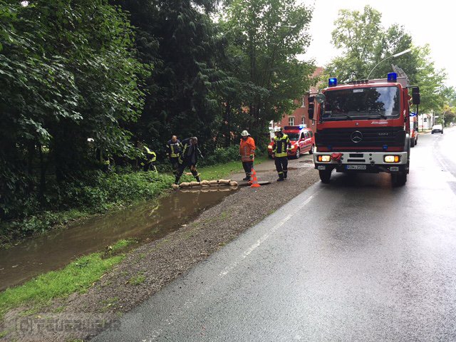 NAchwehen vom Unwetter am 15.08 beschäftigte die Feuerwehr Zeven am 20.08.17, gegen 13:25 Uhr wurde die Ortsfeuerwehr Zeven durch die Polizei Zeven angefordert. In der Bäckerstraße in Höhe des ehemaligen Haus der Jugend sind große Mengen Abwasser über den Gehweg gelaufen, mittels Sandsacksperren wurden die Oberflächenwassereinläufe gesichert,das Schmutzwasser wurde so umgeleitet, dass es in den richtigen Kanaleinlauf fließen kann. Die Einsatzstelle wurde abgesichert und an den Bauhof übergeben.