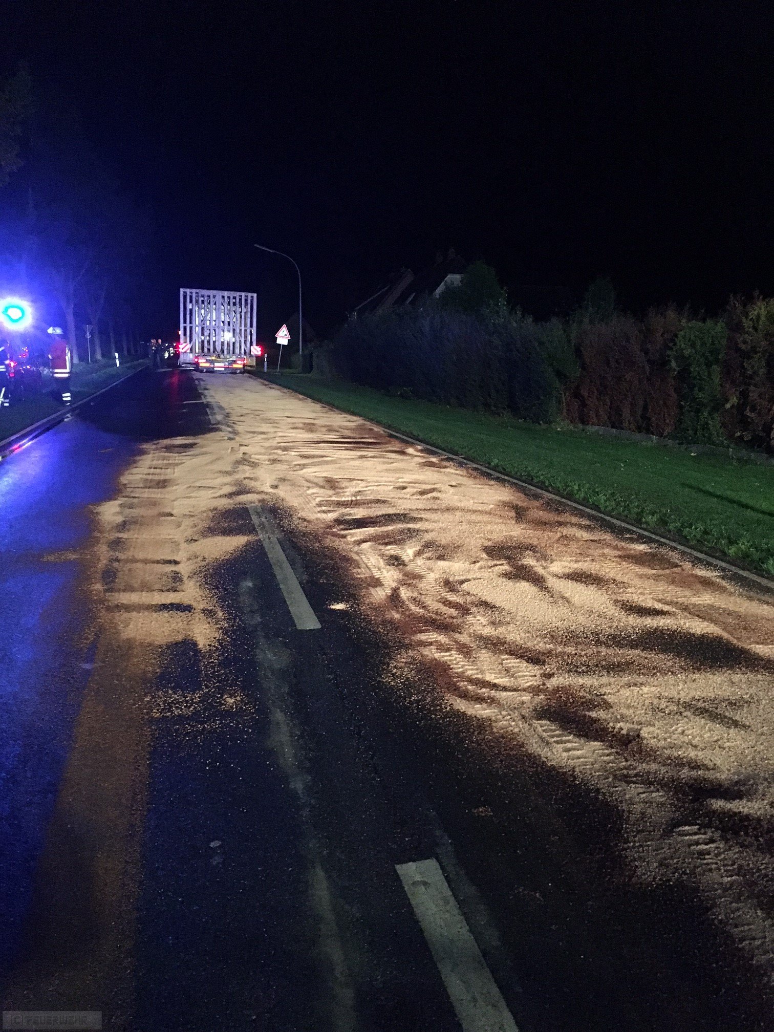 Zeven(tw) DIe Ortsfeuerwehr Zeven wurde zu einer Straßenverunreinigung auf der L 122 in Richtung Bademühlen alarmiert, bei einem Schwertransporter ist eine Hydraulikleitung geplatzt, daduch sind einige Liter Hydrauliköl ausgelaufen.