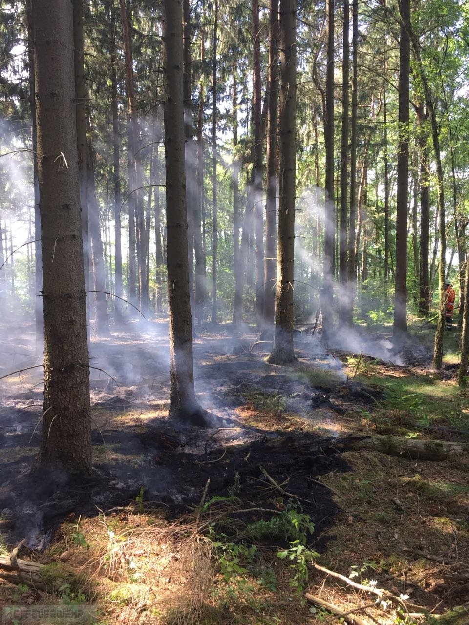Auf Rückfahrt von den Einsätzen auf der BAB wurden die Einsatzkräfte nach Hesedorf (Gyhum) im Bereich der Windräder alarmiert, hier kam es zu einem Waldbrand, die Brandbekämpfung gestaltete sich schwierig, das sich das Feuer bereits in den Waldboden"gefressen" hat. Es wurden noch weitere Tanklöschfahrzeuge nachalarmiert. Die Einsatzkräfte aus Elsdorf stellten noch die Brandwache.