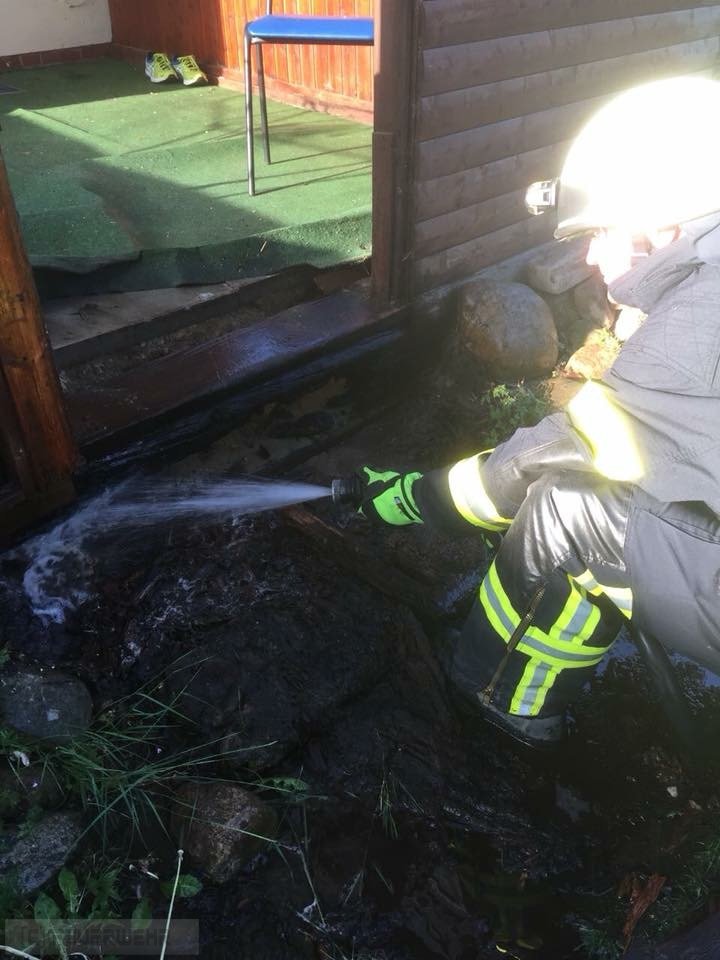 Zeven(tw) Alarm für die Ortsfeuerwehr Zeven am 20.05.18 um 07:10 Uhr zu einer Rauchentwicklung Wohngebäude, auf Anfahrt der Einsatzkräfte kam die Info durch die Rettungsleitstelle, dass alle Bewohner das Gebäude verlassen haben. Nach Lageerkundung durch den Einsatzleiter konnte festgestellt werden, dass alte Bahnschwellen die als Treppe zu einem Wintergarten genutzt wurden schwelen. Die Anwohner hatten bereits mit einem Eimer Wasser bereits gelöscht. Durch die Feuerwehr wurde die Holzkonstruktion entfernt und mittels S-Schlauch Nachlöscharbeiten durchgeführt.