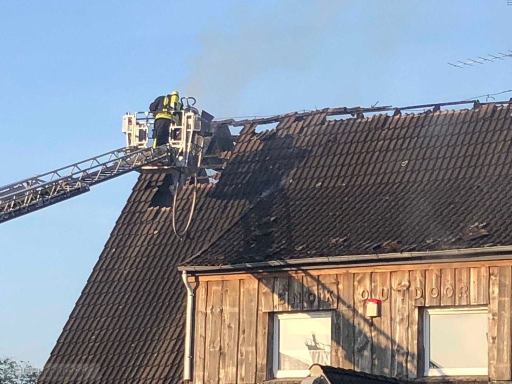 nachalarmiert. Für die Brandbekämpfung im vorderen Dachbereich kam noch die