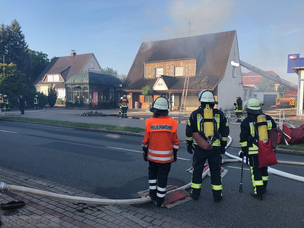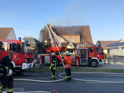 Obergeschoß, sowie in den Dachstuhl aus. Kurze Zeit nach Eintreffen kam es im