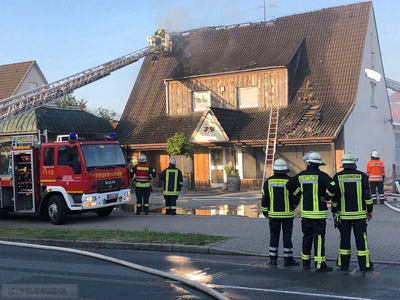 Gebäudebrand in die Kivinanstraße nach Zeven gerufen. Gemeldet wurde ein