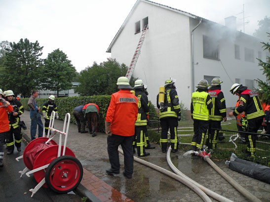 Alarmiert wurden die Feuerwehren aus Brüttendorf, Wiersdorf, Wistedt, Oldendorf, Badenstedt, Brauel und Zeven mit insgesamt 11 Fahrzeugen und 71 Einsatzkräften. Als die ersten Fahrzeuge eintrafen, war das Gebäude bereits völlig vernebelt und auf den Balkonen riefen einige Personen nach Hilfe. Sofort begannen die Einsatzkräfte mit der Menschenrettung von mehreren Seiten. Über Steckleitern und die Drehleiter wurden die Personen vom Balkon gerettet, mehrere Atemschutztrupps durchsuchten derweil das Gebäude nach weiteren Personen. Im Keller konnte mithilfe der Wärmebildkamera bereits nach kürzester Zeit eine weitere Person gefunden und gerettet werden – dies hätte aufgrund der fehlenden Sicht ohne die Kamera deutlich länger gedauert.